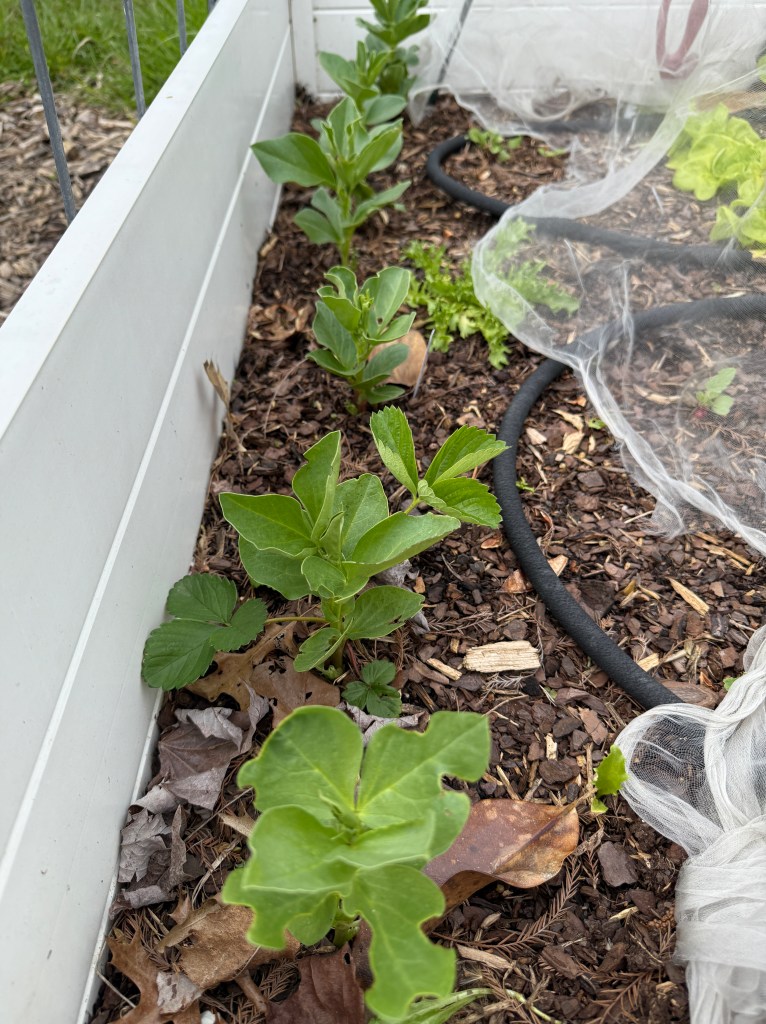 Keep an extra close eye on the weather. Seedlings are very sensitive to frost, even if they can take the cold! Keep your frost cloth accessible. In my zone, we still get frost until Mother’s Day, so that’s how long I sit to take out more sensitive crops. More on that next month!