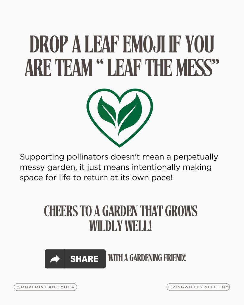Are you team leave the leaves this year? I’d love to hear what you’re doing to support pollinators. Leaf 🍃 a comment here or tag me on Instagram!